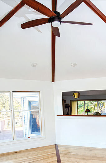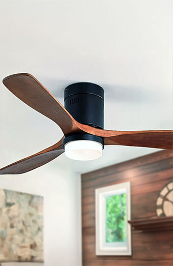 Professional installation of new ceiling fans in bedrooms, living areas, patios and offices, with options for standard fans or modern low-profile designs.