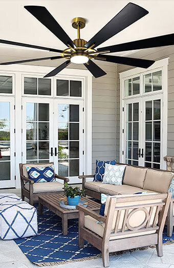 Expert installation of IP-rated weatherproof ceiling fans for decks, patios and verandas, designed to withstand outdoor conditions.